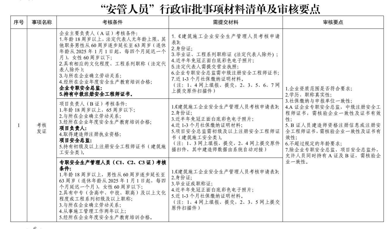 为进一步规范泉州市建筑施工企业主要负责人(A证)、项目负责人(B证)和专职安全生产管理人员(C1、C2、C3)(以下简称“安管人员”)安全生产考核报名审核工作,提升服务效能,我局根据省住建厅办公室《关于进一步规范建筑施工企业安全生产管理人员行政审批服务有关事项的通知》(闽建办建函〔2026〕10号)文件要求,结合考生常见报考问题,梳理得出如下注意事项,请拟报考人员务必仔细阅读并遵照执行: