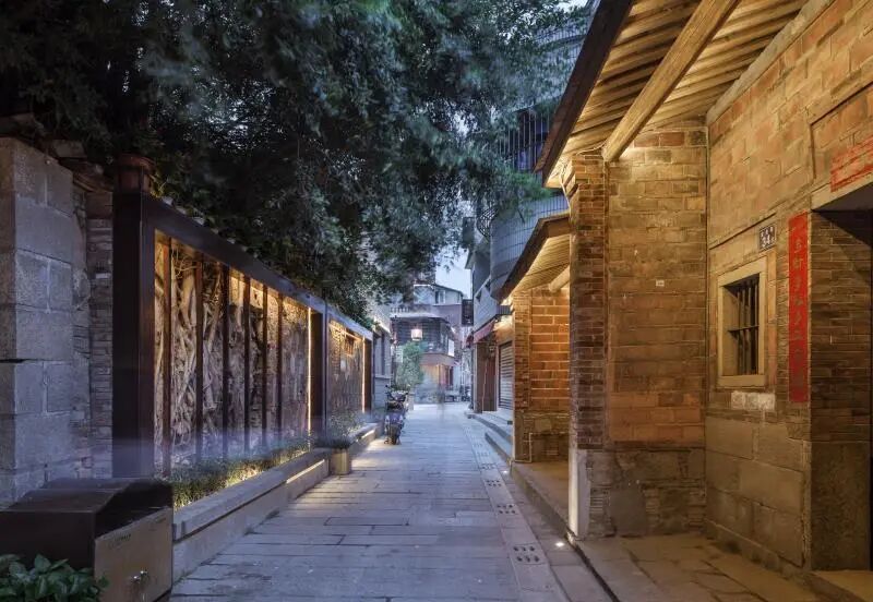 项目回收利用年代久远的地铺老石板和清代、民国时期的旧砖,融入海蛎壳水洗石、夯土墙、出砖入石、木雕、石雕、灰塑等十余种闽南传统工艺,组织传统建筑营造技艺传承人“师带徒”参与修缮工作,原技艺、原真性保护街巷风貌,唤醒了人们对闽南古厝的集体记忆。
